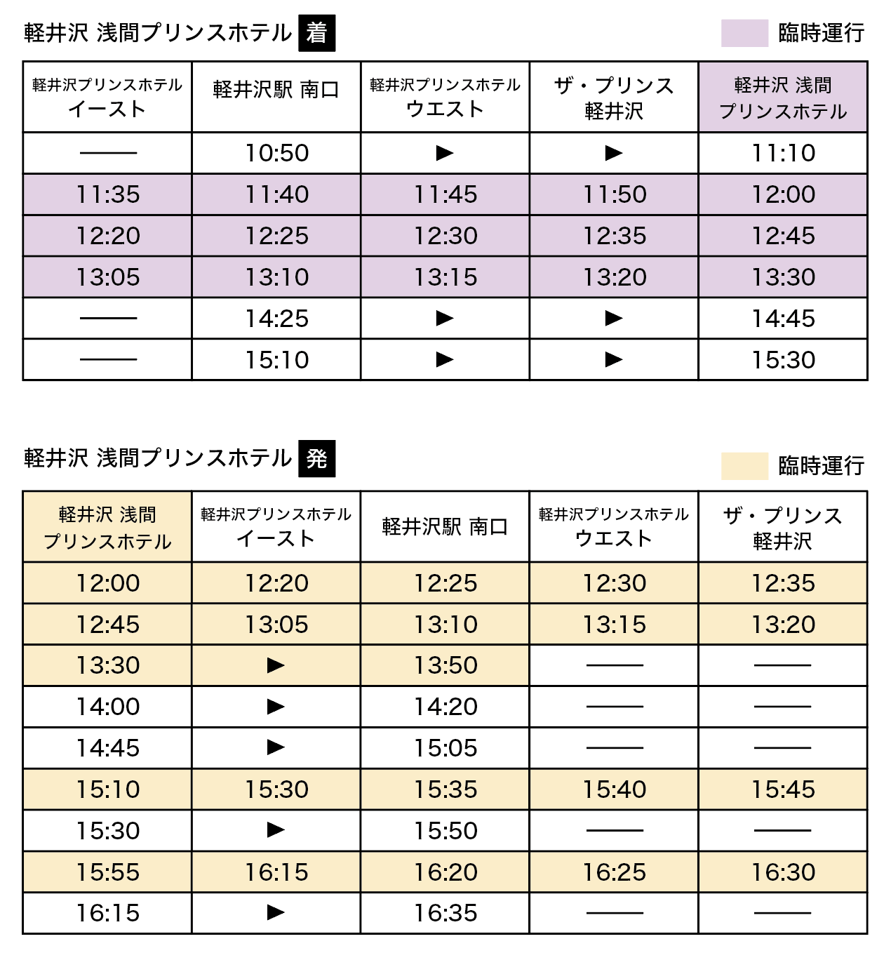 軽井沢プリンスホテル、軽井沢駅より無料シャトルバスを運行いたします。